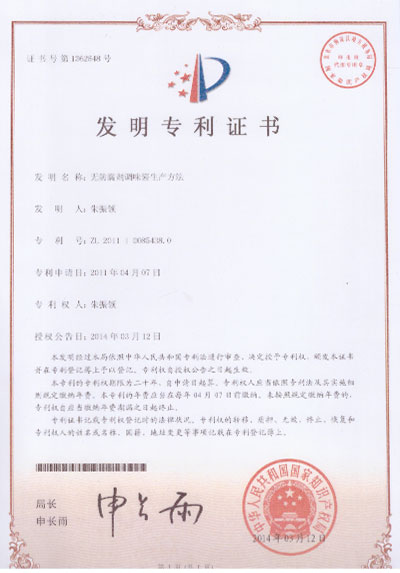 无防腐剂发明专利证书